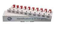Includes tissue sampling unit, Maxi visual female tag with Logo and Management Code printed on front and Management Code on back. Small male button back included.