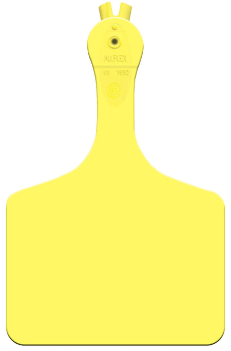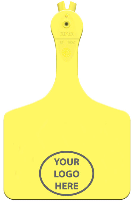 The Allflex ATAG Feedlot tag is a popular size for any size animal. The tags are 4 1/2” high x 3” wide, including neck. Feedlot tags by Allflex are a durable, cost-effective solution for feedlots where tags are only used for a short amount of time. An easy one-piece application and self-piercing pinhole tip mean faster healing and reduced animal stress. Ink Only (no laser engraving).