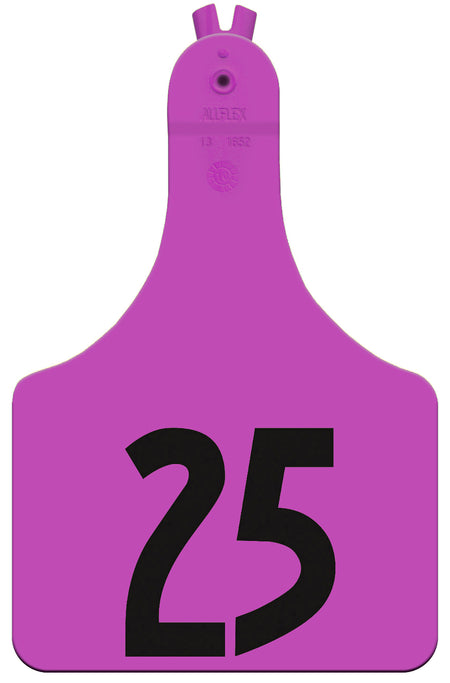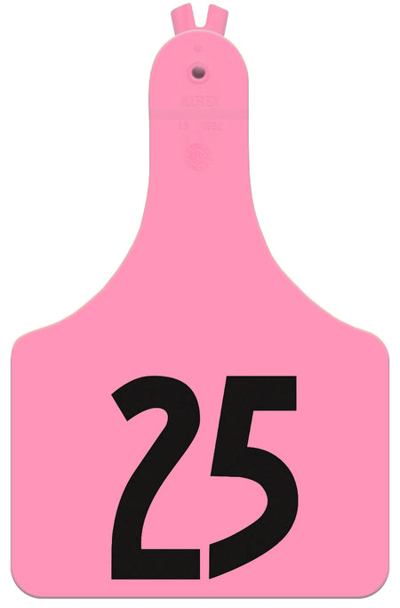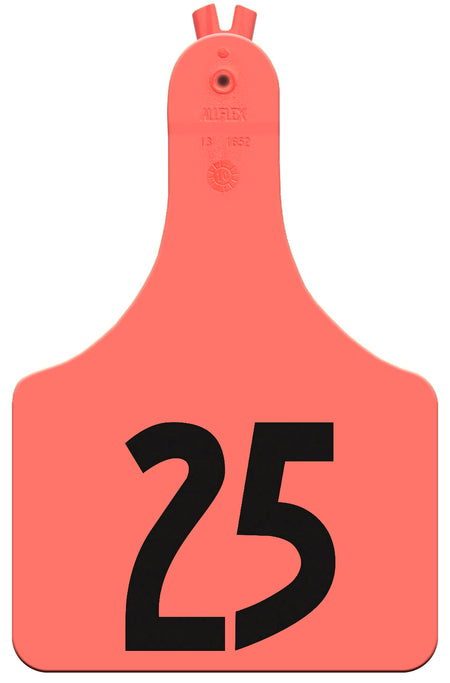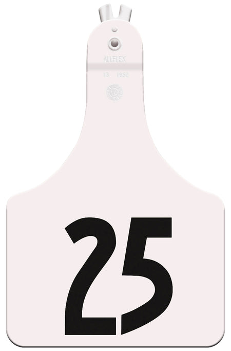 The Allflex ATAG Cow tag is a popular size for cattle. The tags are 4.5" high x 3" wide including neck. Print up to a combination of 5 numbers/letters for the management code, and up to 20 characters for a line of text.
