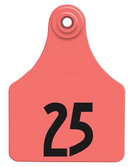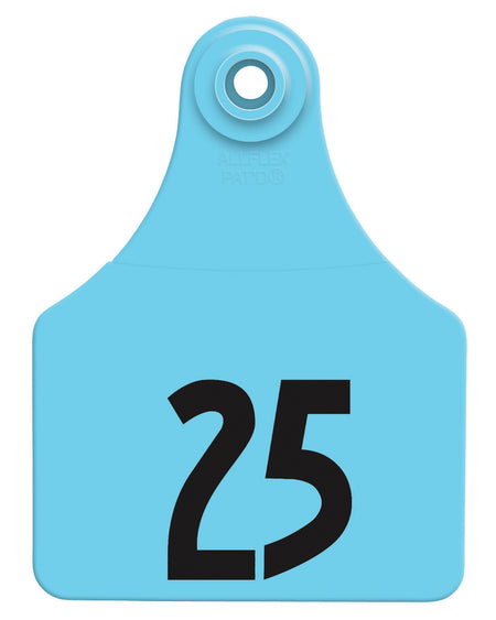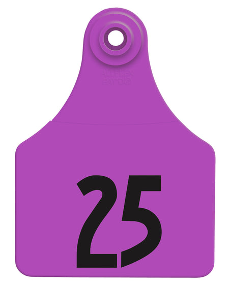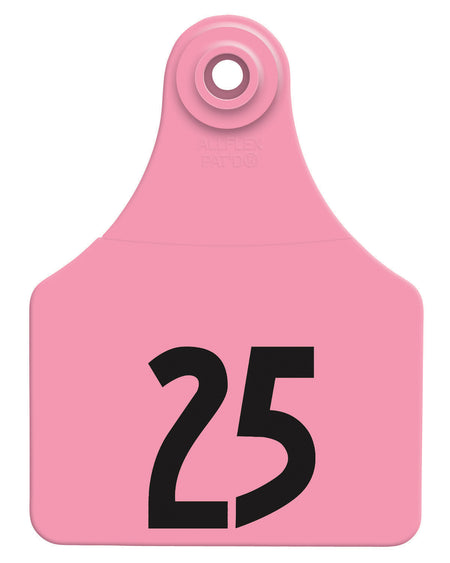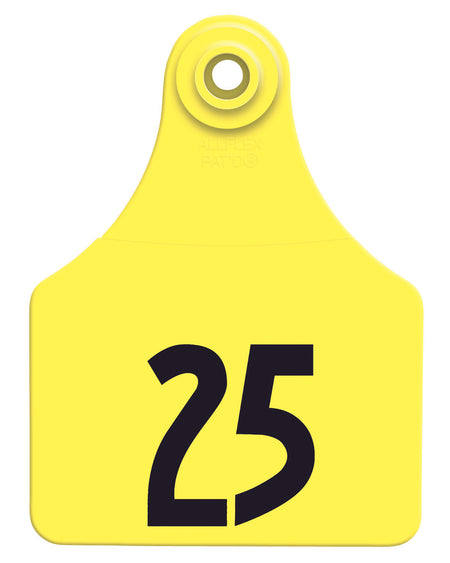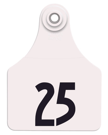 The Allflex Large tag is 3" high x 2 1/4" wide including the neck. These tags work best for calves and smaller livestock, like sheep and goats.