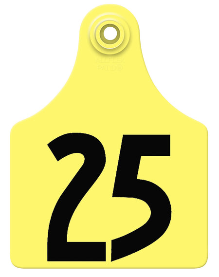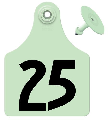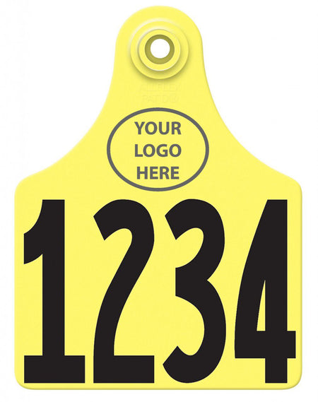 The Allflex Maxi tag is a popular size for cattle. The tags are 4" high x 3" wide including neck. Print up to a combination of 5 numbers/letters for the management code, and up to 20 characters for a line of text.